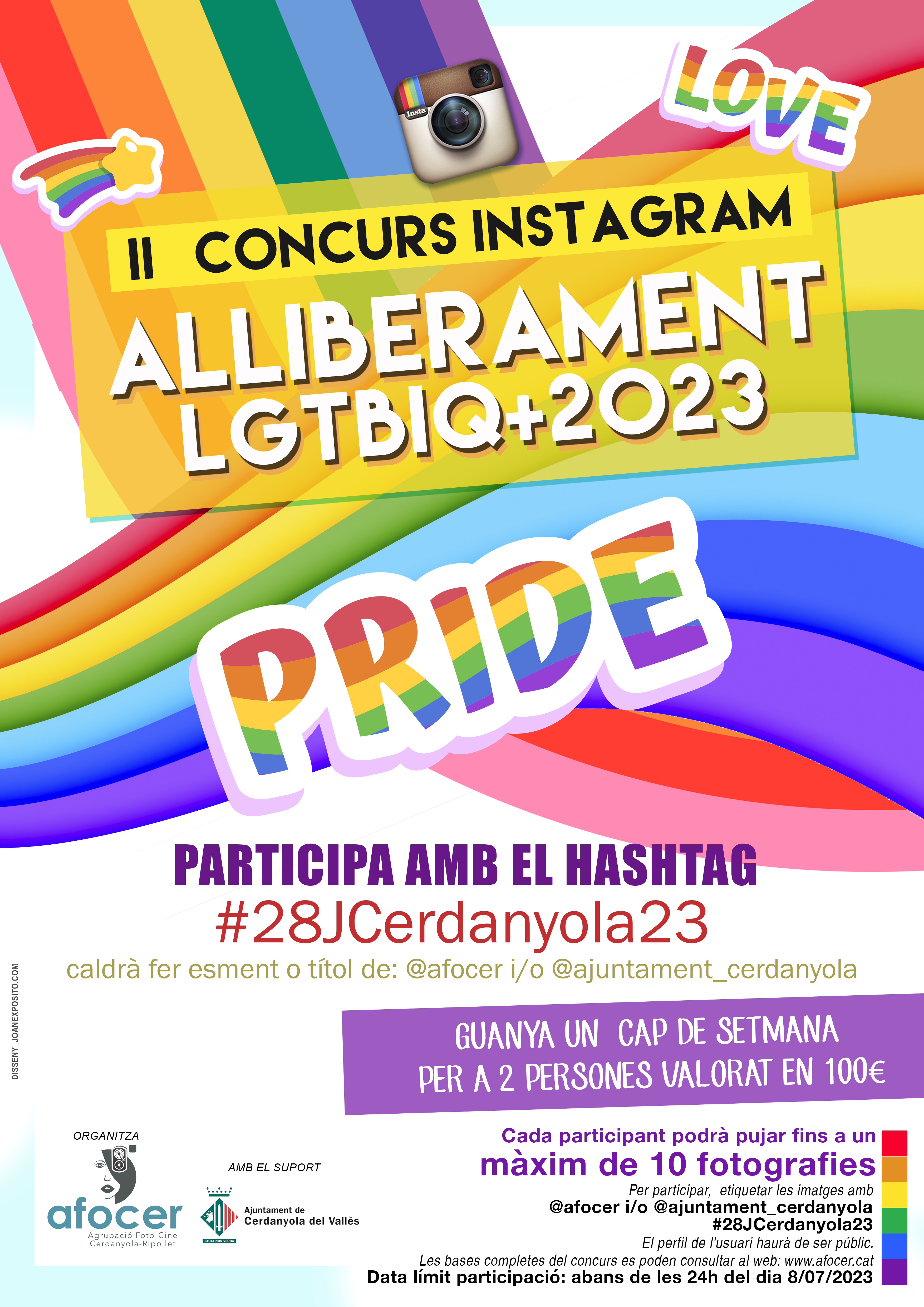 L’AFOCER, Agrupació Foto-Cine Cerdanyola-Ripollet, i l’Ajuntament de Cerdanyola presenten per segon any consecutiu el Concurs Fotogràfic a Instagram en motiu del Dia Internacional per a l’Alliberament LGTBIQ+ 2023, que es commemora el 28 de juny.