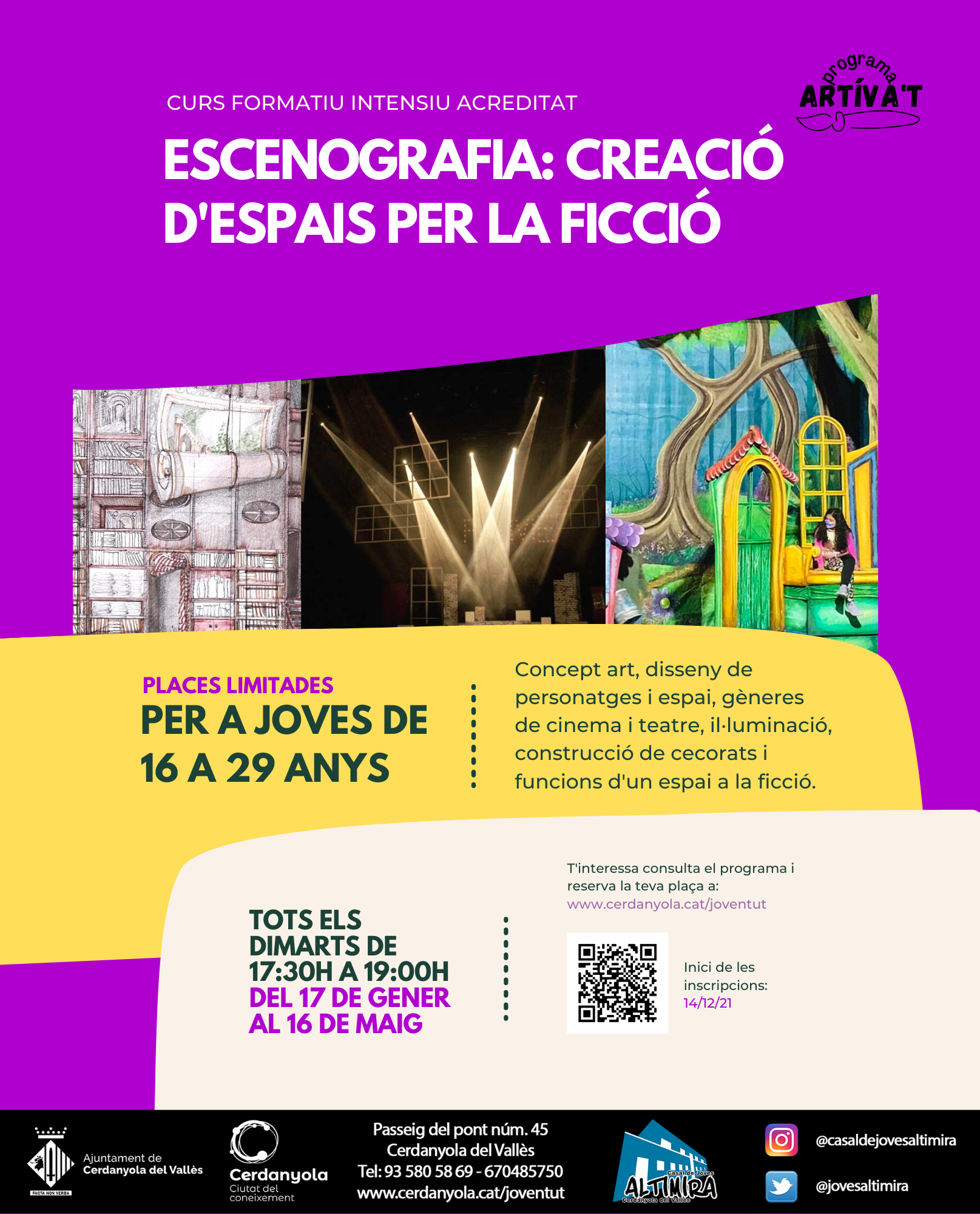 Les places de tots tres cursos són limitades i a un preu molt reduït ja que l’Ajuntament de Cerdanyola subvenciona més del 80% de la quota. Trobareu tota la informació al web www.cerdanyola.cat/joventut/cursos-artivat.