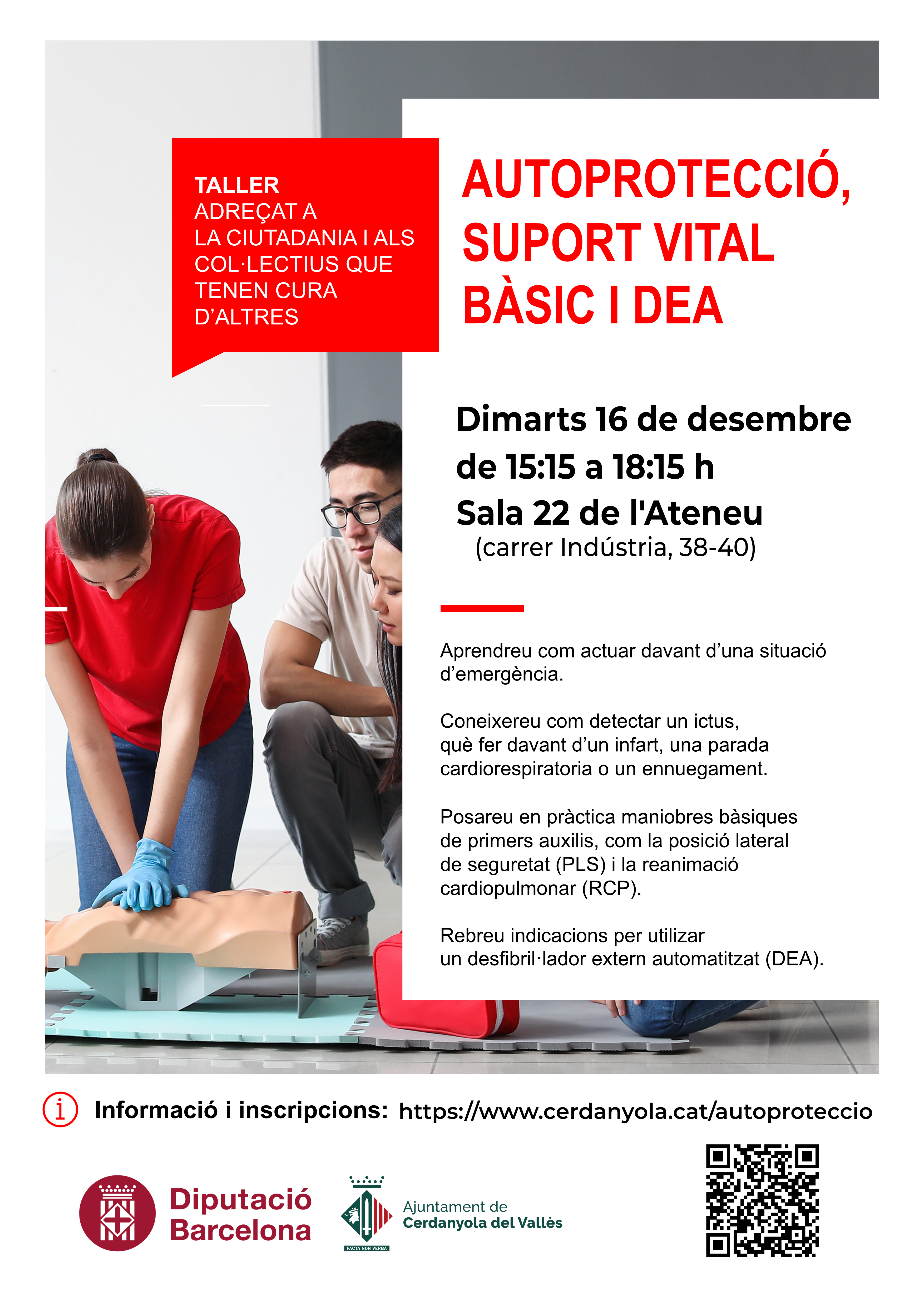 L'activitat és gratuïta i les places estan limitades a 25. Per participar cal inscriure's a https://www.cerdanyola.cat/autoproteccio