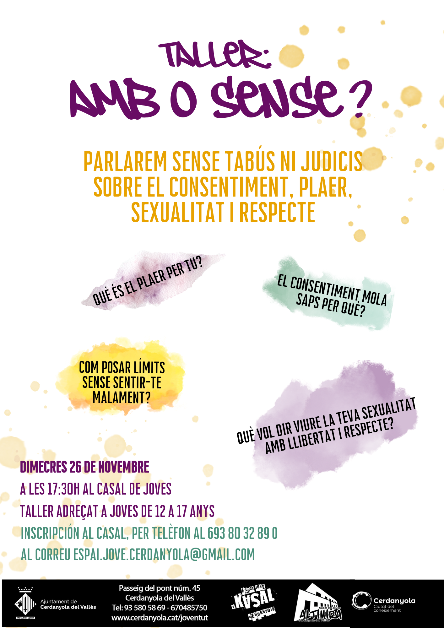 Aquesta és una activitat adreçada al jovent de 12 a 17 anys, on es parlarà sense tabús ni judicis sobre el consentiment, plaer, sexualitat i respecte. Perquè parlar d'aquests temes també és una forma de trencar amb les violències masclistes. El taller anirà a càrrer d' El Taller: masculinitats diverses i perspectiva de gènere.