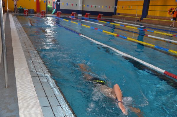 Piscines cobertes de 25 x 12,5 m i de 12,5 x 6 m, amb vestidors, zona de platja, magatzems, infermeria i il·luminació artificial.